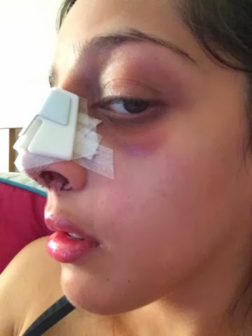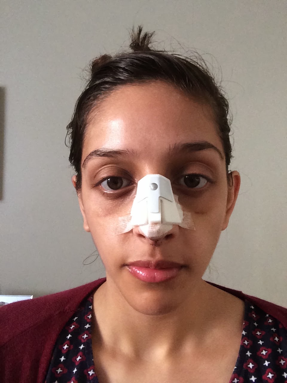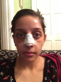 Finally, yesterday on the 25th February I had my splint taken off. I was excited to see what my nose looked like, my black eyes had almost gone and I managed to clean my face with a flannel and hot soapy water.
